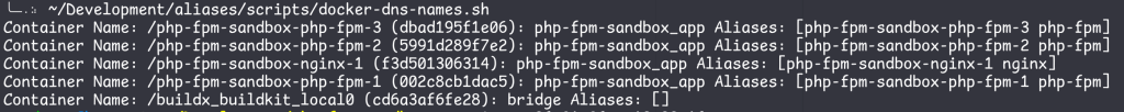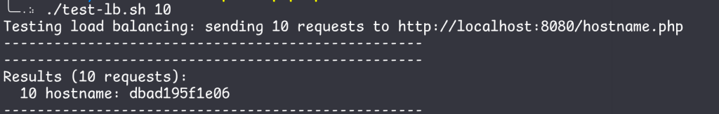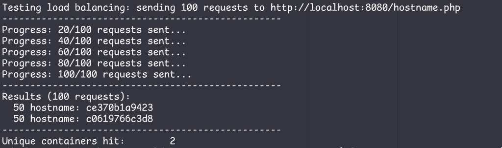 And then I call my handy script that sends a bunch of request to hostname.php, which shows the container hostname (a.k.a the container ID)