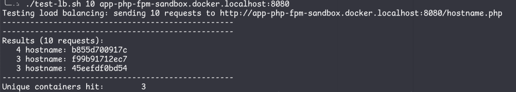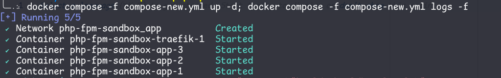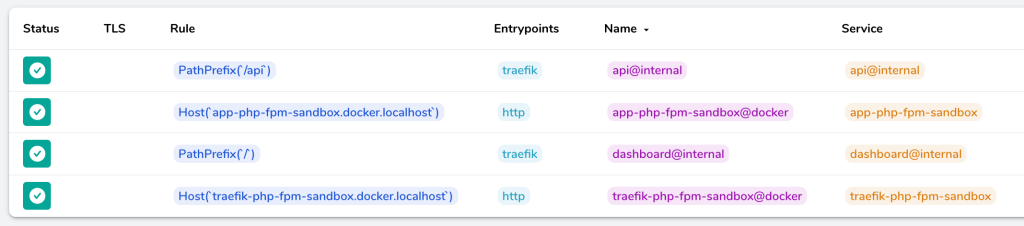 In order to access the application, I added app-php-fpm-sandbox.docker.localhost to my /etc/hosts file. You can configure Traefik in a different way, i.e., proxy “/app” to the application containers instead of routing it using the hostname.